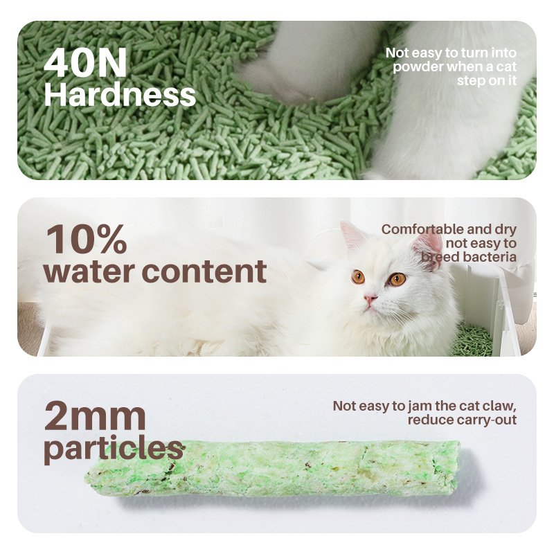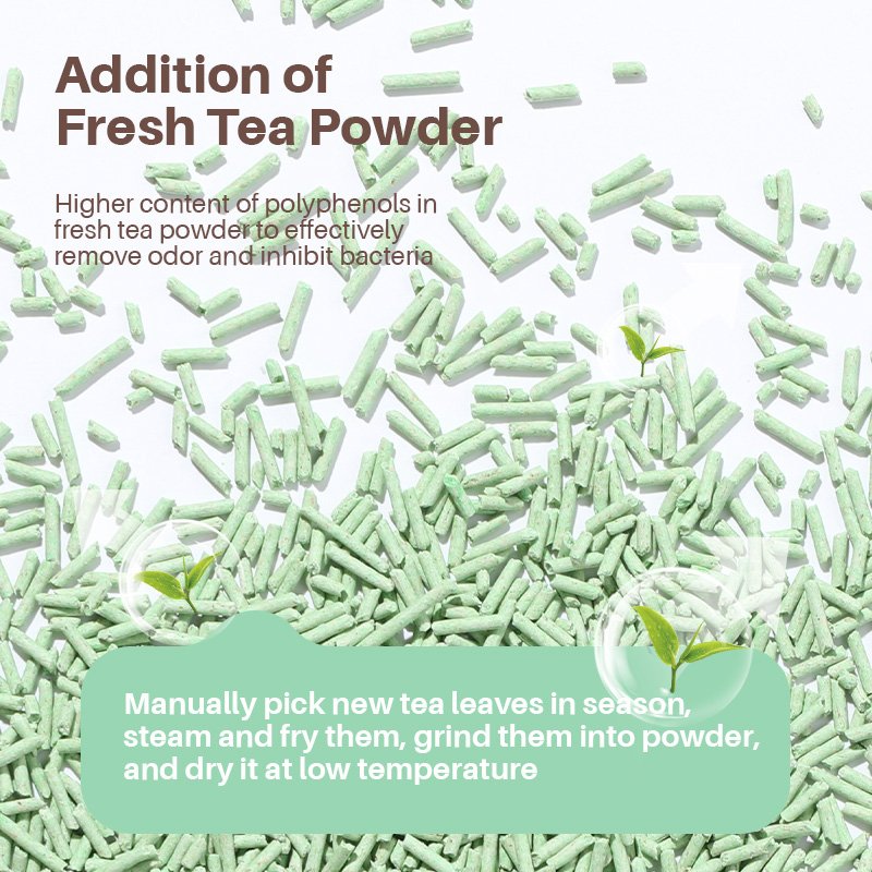 * Tofu cat Litter with green tea, composed of 100% natural plant-based ingredients, no safety issues will arise if cats accidentally eat a small amount.