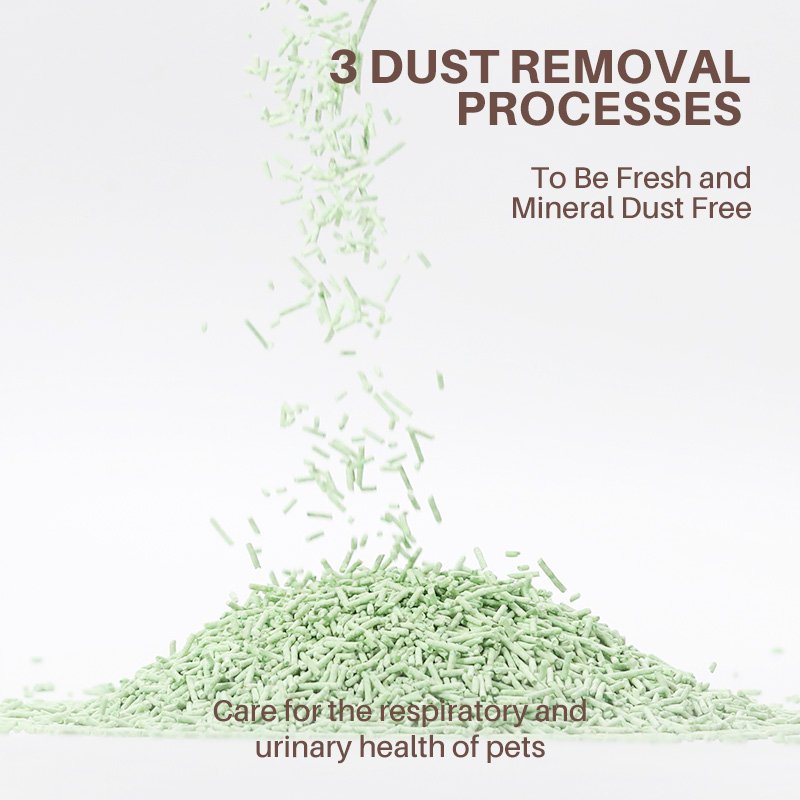 * With strict 5-steps dust removal process and more soy beans for dust reduction, we make sure that the dust rate of the cat litter is less than 5%.